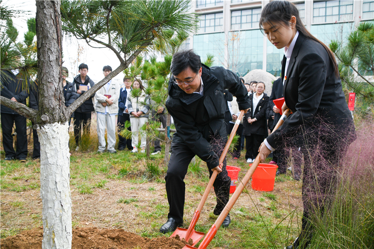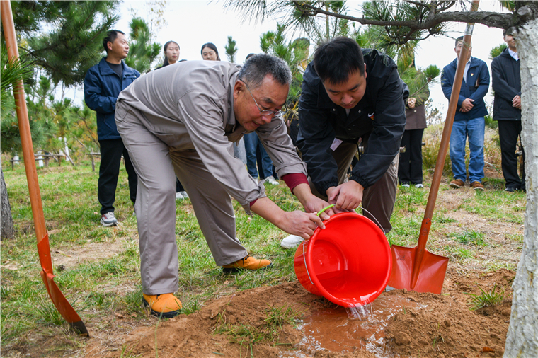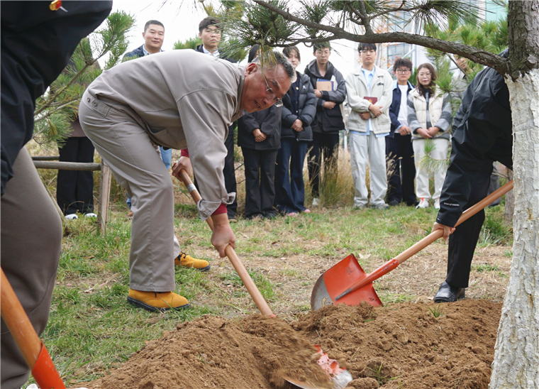 親手將印有自己姓名的銘牌懸掛在樹苗上,郭明義高興的說:“今天我們一起澆灌這棵小樹,就像我們培養了一批又一批學生去建設我們的祖國。我們要栽更多的樹,讓天更藍、水更綠,要培養一代又一代的學生,為我們的國家去奮斗。”他勉勵在場的每一位學子努力學習,成長為新時代的雷鋒,用實際行動去踐行和傳承這份寶貴的精神財富。