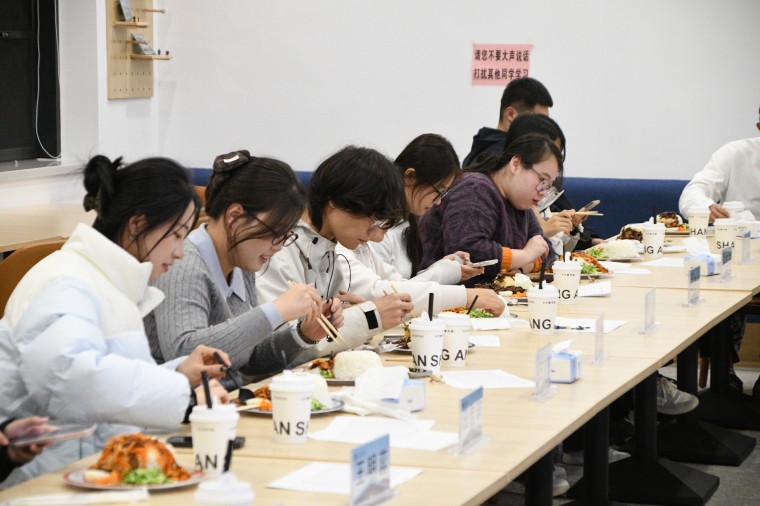 交流環節結束后,校領導與學生代表們共進晚餐。餐敘間,師生繼續進行著親切的交流。