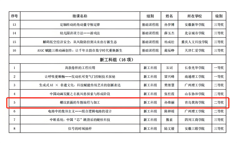 近日,由全國民辦高校課程思政聯盟、中國民辦教育協會高等教育專業委員會聯合舉辦的全國民辦高校課程思政微課教學比賽結果揭曉,青島黃海學院教師憑借扎實的教學功底與創新的課程思政設計,斬獲新文科組一等獎、二等獎各一項,新工科組二等獎一項,彰顯學校課程思政建設的豐碩成果。