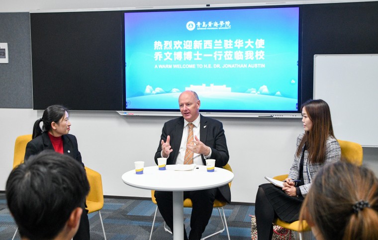 12月3日下午,新西蘭駐華大使喬文博博士一行來校訪問,就深化中新高校之間教育合作、拓展學生相互交流領域等議題進行深入交流,并實地考察青島黃海學院惠靈頓理工聯合學院(以下簡稱“惠靈頓學院”)辦學情況。青島市委外辦副主任丁安輝陪同來訪。學校校長李清山,副校長、惠靈頓學院院長梁忠環,副校長王鵬程等校領導及相關部門負責人予以熱情接待。