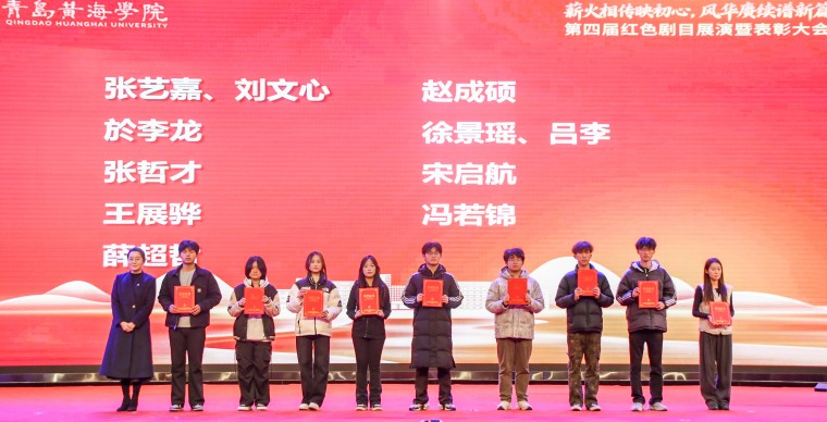歲月銘刻奮斗足跡,光影映照赤誠初心。為深入學習貫徹習近平新時代中國特色社會主義思想,引導廣大青年學子銘記黨的光輝歷程,12月12日晚,青島黃海學院第四屆“薪火相傳映初心,風華賡續譜新篇”紅色劇目展演暨表彰大會在學校體育館隆重舉行。黨委委員、副校長劉紀新,副校長王鵬程,黨委委員、紀委書記、學生工作部部長趙國光等學校領導以及相關部門負責人、各二級學院黨總支書記、分管學生工作院長等出席活動。全校師生代表3000余人齊聚一堂,共同奔赴這場跨越時空的紅色精神之約。