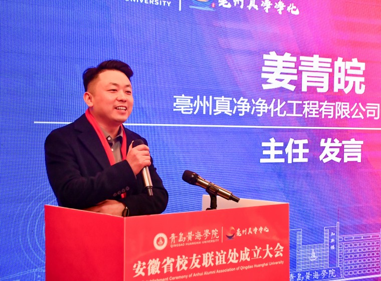 新任主任委員、2006級國際金融專業校友姜青皖在發言中深情回顧了在母校的求學時光。作為亳州真凈凈化工程有限公司的負責人,他分享了企業在凈化工程領域的深耕歷程,并闡述了企業品牌“真凈”的內涵——“真誠做人,干凈做事”。他表示,將不負眾望,致力將聯誼處打造成為校友間互助互愛、共同發展的堅實平臺。