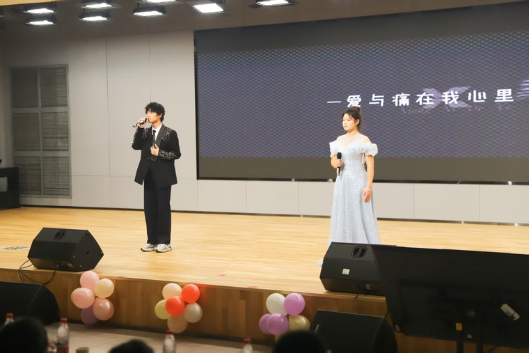 晚會以“韶華赴新程、家國赤子心、逐夢向世界”三大篇章為主線,串聯起青春理想、家國情懷與世界視野,呈現了一場兼具思想深度與藝術溫度的視聽盛宴。第一篇章“韶華赴新程”以青春活力為底色,青年療養院樂隊的合奏奏響悠揚序曲,明快的歌舞、悅耳的樂器演奏輪番登場,既展現出青年學子的蓬勃朝氣,又通過溫馨的互動環節拉近了師生距離,讓整場晚會的氛圍在一開始便熱烈升溫。第二篇章“家國赤子心”滿含深情與擔當,紅劇再現奮斗初心,歌曲唱響對祖國的熱愛與祝福,鏗鏘有力的朗誦傳遞著對榜樣精神的敬仰,一幕幕真摯演繹直抵人心,讓家國情懷在師生心中深深扎根。第三篇章“逐夢向世界”盡顯多元開放的青春風采,動感十足的爵士舞、引發全場共鳴的青春歌曲,以及將中華傳統之美與世界文化元素巧妙融合的走秀節目,讓舞臺綻放出別樣光彩,最終晚會在全體演職人員合唱《相親相愛》的溫馨旋律中圓滿落幕。