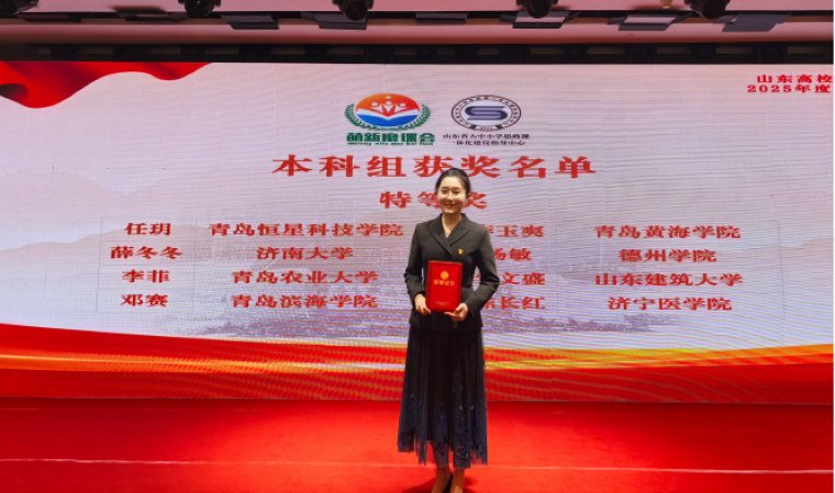 12月5日,山東高校思想政治理論課2025年度“萌新磨課總會”在青島西海岸新區順利舉行。我校教師李玉爽憑借出色表現,一路披荊斬棘,在150余所高校中脫穎而出,榮獲特等獎。