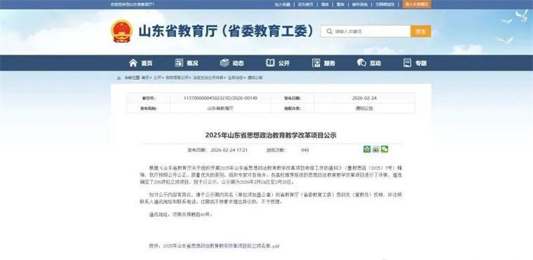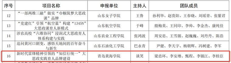 近日,山東省教育廳正式公布《2025年山東省思想政治教育教學改革項目擬立項名單》,我校馬克思主義學院申報的“大思政課建設項目”《新時代雷鋒精神引領的“知信行統一”大思政實踐育人品牌建設》成功獲批立項。這是繼2023年省級思政教改項目實現突破后,學院連續第二次獲得該類省級教學改革項目支持,充分彰顯了我校在思想政治教育內涵建設、協同育人機制創新與“大思政課”實踐探索方面的扎實基礎和顯著成效。