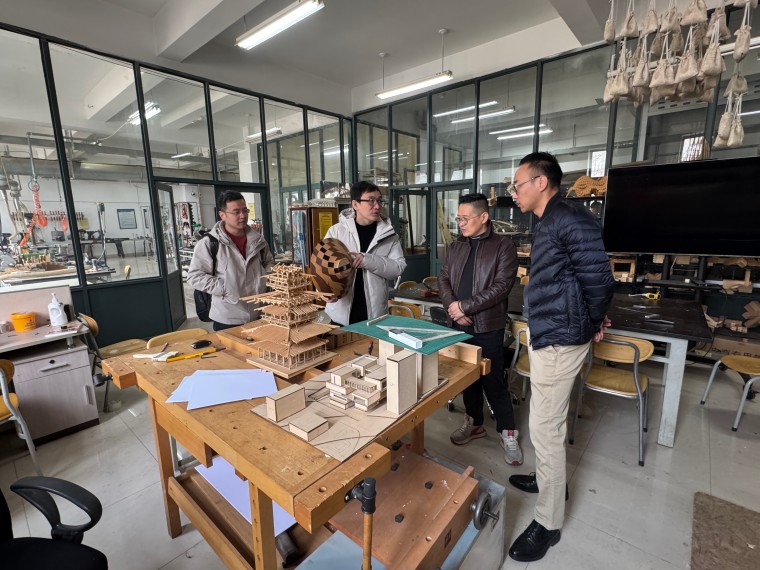 在青島理工大學,交流團受到該校綜合營造實驗室負責人、建筑基礎教研室程然主任的熱情接待。雙方圍繞建筑營造、木作藝術教學、實訓室設備建設與運營管理等核心議題深度研討,程然主任詳細介紹了綜合營造實驗室建設理念、設備配置標準、功能分區及教學運營模式,分享了設備布局、維護管理、安全保障等實操經驗,強調實訓室建設需貼合專業教學與學生能力培養需求,并對設計與美術學院主動學習、務實推進實訓室建設的態度給予肯定。通過交流,雙方就后續實踐教學合作、課程共建等事宜達成共識。