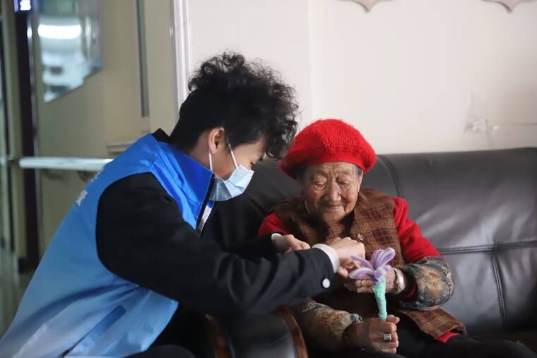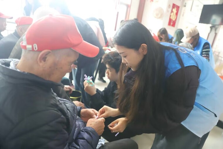 五彩扭扭棒在指尖靈動翻轉,一朵朵精致玫瑰、一只只可愛小動物、一個個溫馨小掛件陸續成型。老人們捧著親手完成的作品,臉上洋溢著幸福笑容,紛紛向身邊人展示這份專屬溫情。小小扭扭棒,搭建起兩代人心靈溝通的橋梁,讓敬老院處處充滿溫馨與治愈。