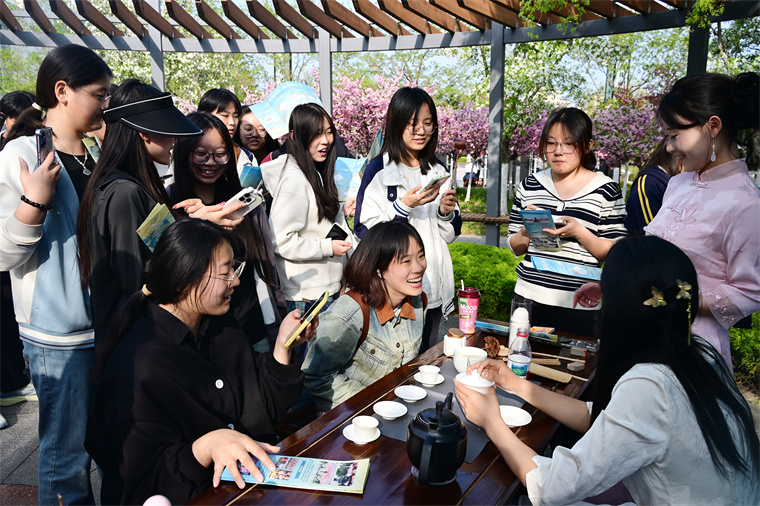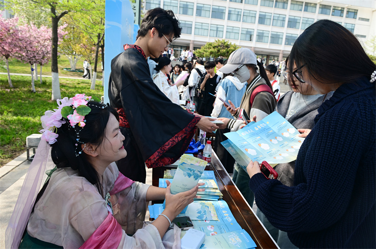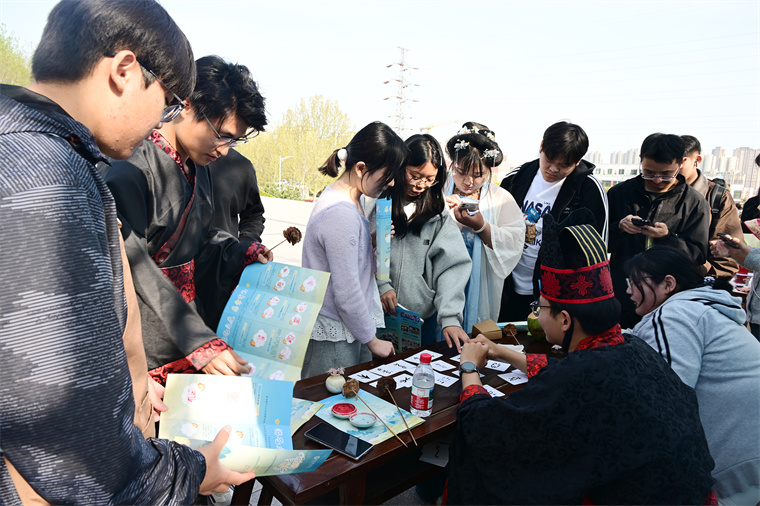 4月15日下午,青島黃海學院孔子廣場格外熱鬧。學生們手握一本“通關文牒”,穿梭于各個任務點之間——集章、闖關、兌換獎品,玩得不亦樂乎。