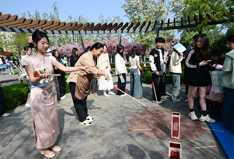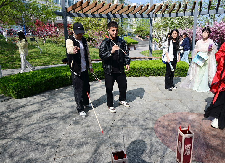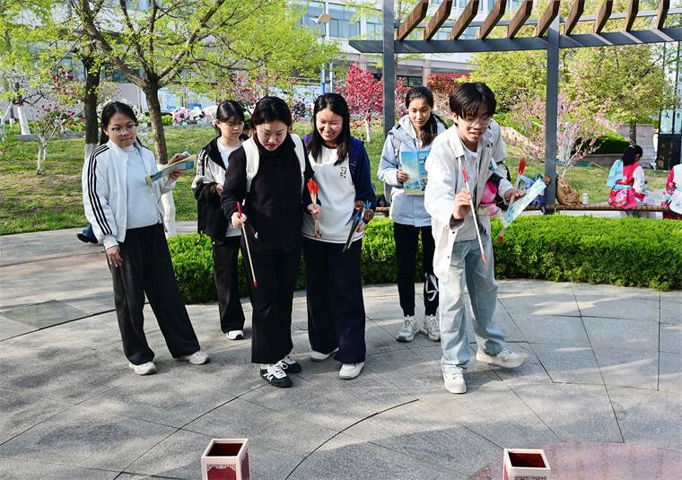 活動現場,幾名來自巴基斯坦、蒙古、塔吉克斯坦的留學生身影格外引人注目。他們在“倉頡問字”任務點饒有興致地辨認甲骨文,在投壺區跟隨司射學習投壺禮儀,還在孔子像前留影。留學生表示:“以前只在課本上了解過二十四節氣,今天親身體驗了谷雨習俗,感覺中國文化特別有溫度。”
