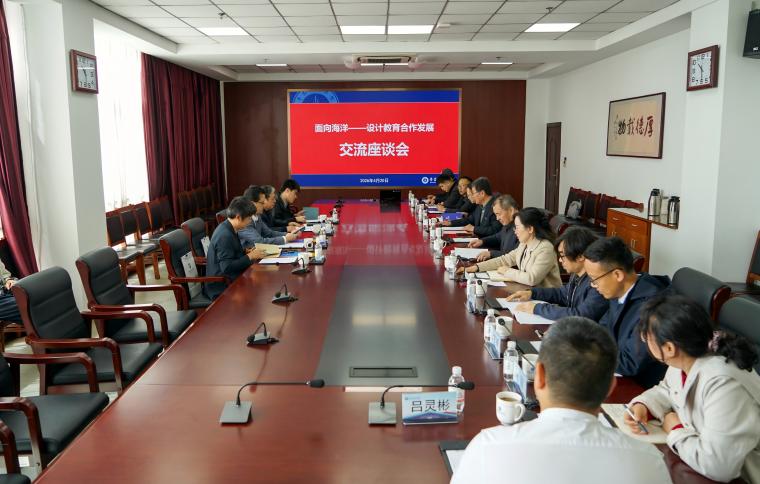 邵力民圍繞學院專業建設、學科特色、跨學科融合及海洋設計人才培養思路作詳細匯報。他介紹,我校設計相關教學力量覆蓋多學院、各有側重、互補協同,設計與美術學院以環境設計、視覺傳達設計、數字媒體藝術為核心;智能制造學院聚焦船舶與海洋工程、智能交互等方向,推動工科與設計深度融合;智慧城市學院相關系部也布局設計關聯內容,有力促進學科跨領域延伸,充分彰顯學科交叉融合優勢,并系統闡述了面向海洋產業構建“設計 + 工程 + 智能” 復合型人才培養體系的合作構想。