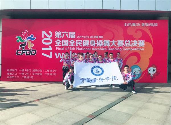 我校健美操隊成立兩年以來,在校領導的大力支持下,逐漸壯大,從2016年亞洲體操節暨全國全民健身操舞大賽總決賽的全國第二名到今年的2017年全國全民健身操舞大賽有氧踏板的冠軍,不斷地成長,不斷地突破!加油黃海,再創佳績!