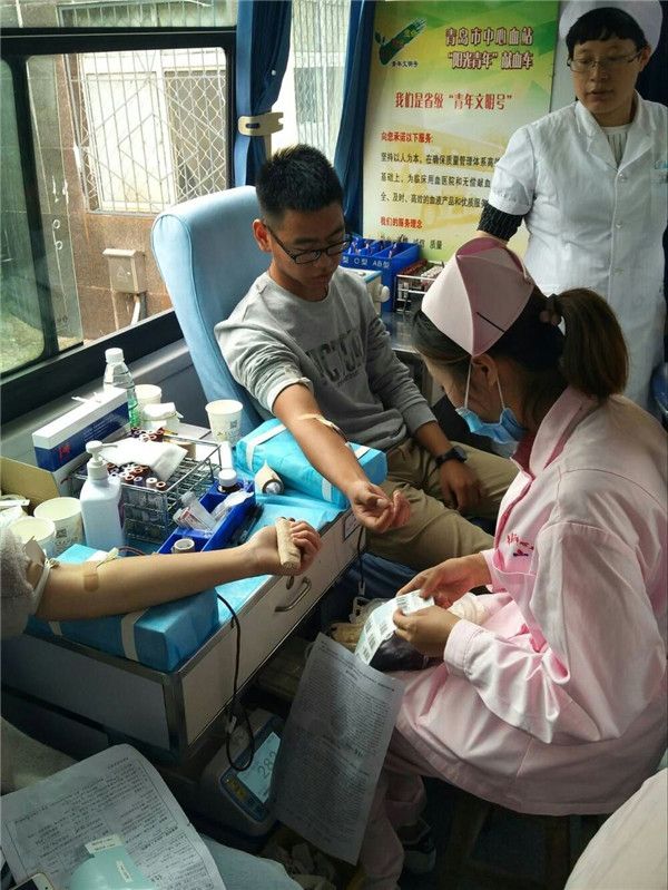 雖然已是初秋,天氣有點微涼,但是這樣也阻擋不了學生們獻血的熱情,同學們有序的排起了長隊,等待獻血。期間,同學們緊張而興奮,許多同學都是第一次獻血,在獻血的剛開始很緊張,但在醫護人員的鼓勵下,漸漸地放松了自己,都堅持按要求完成獻血。接受記者采訪的大一的同學表示“能為社會多做一點貢獻,為社會盡點微薄之力,一人獻一點血,便能救許多人。”當談及為什么來獻血時一個女生表示“自己成年了,應該為社會做貢獻。”