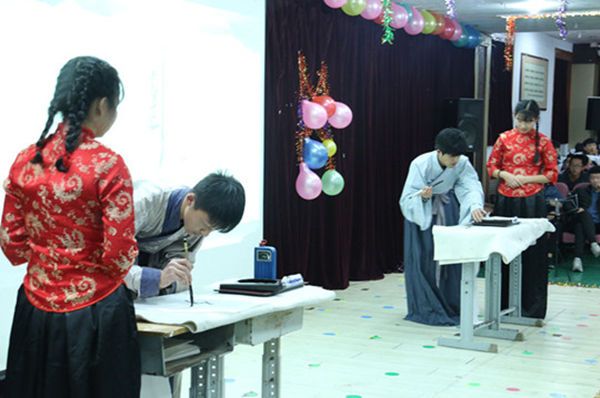 晚會由一場活力四射的水鼓舞表演拉開序幕。首先由王院長致辭,王維智院長總結了半年來學院的各項工作和取得的成績,特別對學生干部付出的勞動表示感謝,宣讀本學期獲獎的先進班集體、優秀班干部、雷鋒宿舍獲獎的名單。在主持人的引領下獲獎代表陸續登臺領獎,他們臉上洋溢的是幸福的笑容,那是自信是果敢,為此他們要付出比常人更多的艱辛與努力。隨后進行的文藝匯演節目可謂精彩紛呈,吸人眼球:充滿活力的現代舞、勵志幽默的相聲、有機結合的朗誦與書法、民族與古典交匯的舞蹈串燒、飛揚個性的小合唱、心存感激的手語舞表演。每一個晚會節目都滲透同學們對學院生活的熱愛,展示著他們豐富多采的校園生活。晚會在一首師生合唱的《相親相愛》的歌聲中落下帷幕,為本次晚會畫上了一個完美的句號。