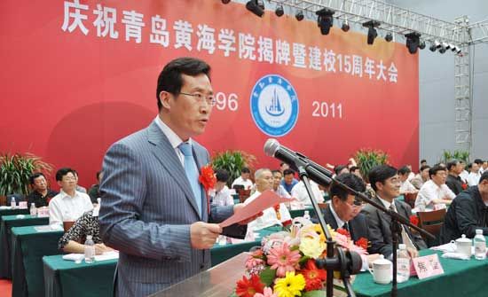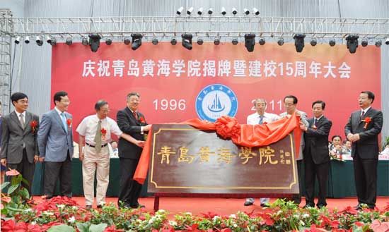 儀式最后,山東省政協副主席栗甲、山東省人大原副主任墨文川、山東省政府原副省長邵桂芳、全國高等學校設置委員會副主任劉鳳泰、省高校工委常務副書記齊秀生與青島黃海學院董事長劉常青共同為學院揭牌。
