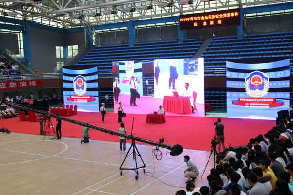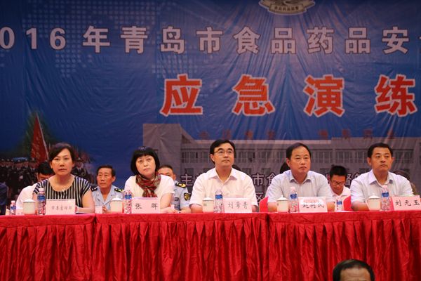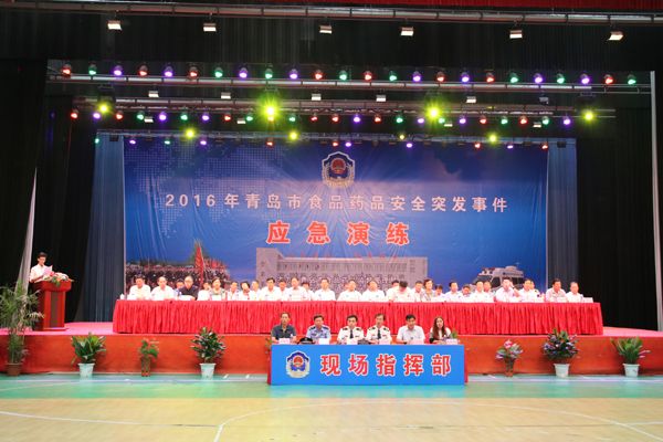為全面錘煉、檢驗新體制下食品藥品監管隊伍的應急處置能力、各部門之間的協調配合能力和食品藥品安全綜合保障能力,2016年9月13日,2016年度食品藥品安全突發事件應急模擬演練在青島黃海學院體育館舉行。省食品藥品監管局李超群副局長出席了本次演練活動,市政府應急辦、市食安委相關成員單位有關負責同志,各區市政府分管領導,各級食安辦(食品藥品監管局),黃島區有關部門及單位負責同志等2300余人觀摩了演練。本次演練由市食安辦、市食品藥品監管局主辦,黃島區人民政府承辦,黃島區食安辦、黃島區食品藥品監管局、膠州市食品藥品監管局、黃島區衛生和計生局、市公安局黃島分局、黃島區機關事務管理局、青島黃海學院、青島西海岸醫療中心等協辦。