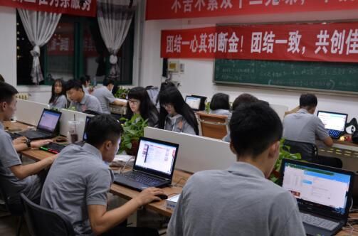 “戰鼓雷鳴618,旗開得勝業績佳!618!只因有你!銷量才能破億!”,“今天付出,明天收獲,全力以赴,決戰618!”……教室墻上的條幅標語就像一種號令,激勵著每個熱情的青年人。他們在為實現自身的價值而努力!在他們身上讓人看到了電商人的執著和向上的斗志。