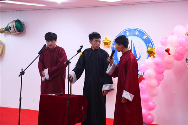 接下來第一個上臺表演的就是武術社團的同學,他們給大家表演了一場精彩絕倫的武術表演,特別是武術社團的女生,詮釋了一句誰說女子不如男的場景,所有人無不拍手叫絕,緊接著是由黃海之聲廣播站成員表演的一段相聲,把在場的氣氛推向最高。如果非要選出一個最受矚目和關注的節目,當屬靈模社的小哥哥和小姐姐帶來的走秀。晚會結尾三位同學深情的演唱給晚會劃了一個完美的句號,多想在優美的歌聲中繼續陶醉幾秒鐘,但是天下無不散的宴席,晚會到此也正式結束了。