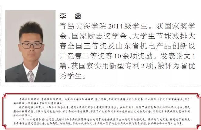 2018年2月28日,《人民日報》公布了國家獎學金獲獎學生代表名單,我校機電工程學院李鑫榜上有名。