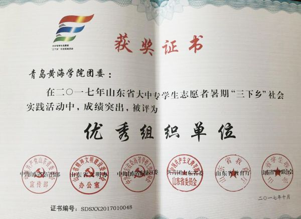 近日,中共山東省委宣傳部、山東省文明辦、中共山東省委教育工委、共青團山東省委、山東省教育廳、山東省學生聯合會聯合下發文件,對在2017年山東省大中專學生志愿者暑期文化科技衛生“三下鄉”社會實踐活動中表現突出的集體和個人予以表彰。我校獲“2017年山東省大中專學生志愿者暑期‘三下鄉’社會實踐優秀組織單位”榮譽稱號,大學生陽光社-暖陽支教隊和青年志愿者協會指南針公益助學團-臨沂隊兩個團隊被評為“2017年山東省大中專學生志愿者暑期暑期‘三下鄉’社會實踐活動優秀服務團隊”,張永軍、陳祥德兩位老師被評為“2017年山東省大中專學生志愿者暑期暑期‘三下鄉’社會實踐活動優秀指導老師”,齊運達等3名同學被評為“2017年全省大中專學生志愿者暑期暑期‘三下鄉’社會實踐活動優秀學生”。與此同時,“千村行動”專項活動中,青年志愿者協會濟寧嘉祥支教隊榮獲“2017年山東省大學生‘三下鄉·千村行動’共青團助力扶貧專項行動優秀服務團隊”,劉敬林老師榮獲“2017年山東省大學生‘三下鄉·千村行動’共青團助力扶貧專項行動優秀指導老師”,于小燕等3名同學榮獲“2017年山東省大學生‘三下鄉·千村行動’共青團助力扶貧專項行動優秀學生”。