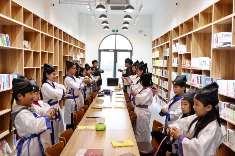 志愿者到達社區后,首先以向社區孩子們講述國學文化為切入點開展活動,并向孩子們示范行鞠躬禮。繼而,在志愿者們的帶領下引導社區孩子們集體朗讀《弟子規》,峨眉山社區的閱讀室傳出朗朗的讀書聲。