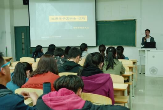 沈軼學長借助PPT的文字和圖片的形式向學弟、學妹們,向學弟學妹展現了自己在大學的學習和生活的魅力與實力,分享了自己的學習方法,并鼓勵同學們積極參加各種活動,不斷豐富自己的大學生活,并與同學們交流心得體會,熱情地為學弟學妹答疑解惑,同學們積極配合,現場氣氛十分活躍。