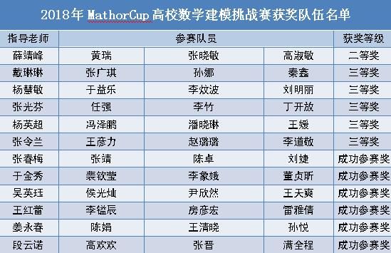 5月15日,2018年MathorCup高校數學建模挑戰賽獲獎名單揭曉。我校學子在此次比賽中榮獲國家二等獎1項,國家三等獎5項,成功參賽獎6項。