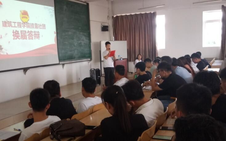 6月13日下午14:30,建筑工程學院掛靠社團換屆答辯活動在二樓東配多媒體教室5舉行,出席本次活動的有團總支學生會各部門部長,各社團的現任社長等。
