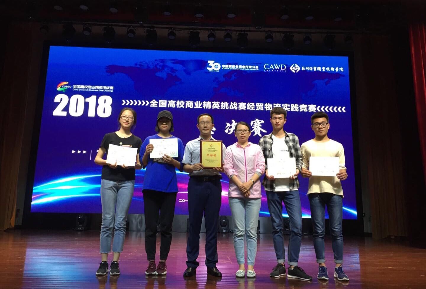 2018年6月1-3日,全國高校商業精英挑戰賽經貿物流實踐競賽總決賽于江蘇省蘇州市舉行,來自全國各地的105支隊伍參加本次競賽。經過激烈角逐,我校管理學院何浩、王海鑫、李之琦、賈東晨組成的“浩氣星辰”團隊取得了二等獎的優異成績。