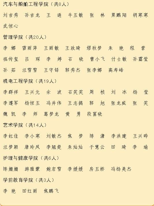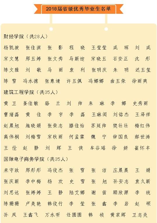 為樹立典型,表彰先進,激勵青年學生奮發有為,根據《山東省教育廳關于做好2018屆高校師范類優秀畢業生評選工作的通知》和《山東省人力資源和社會保障廳關于開展2018年非師范類高校畢業生生源信息報送審核工作的通知》精神,經各學院評選推薦,學校審核公示并上報山東省教育廳、山東省人力資源和社會保障廳評審,現決定對楊凱旋等168名2018屆畢業生予以表彰,授予“山東省優秀畢業生”稱號。