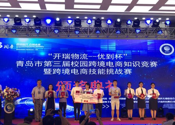7月6日,“跨境榮興 合創未來”2018中國·青島跨境電商行業高峰論壇暨青島市跨境電子商務協會3周年年會在青島漢卓酒店成功舉辦。我校兩個參賽團隊在青島市第三屆校園跨境電商知識競賽中榮獲二等獎和三等獎,并榮獲“2018年度跨境電商最具活力獎”。學校校長助理梁忠環,國際電子商務學院石淑翠、張鹿老師以及6位獲獎學生參加了此次活動。