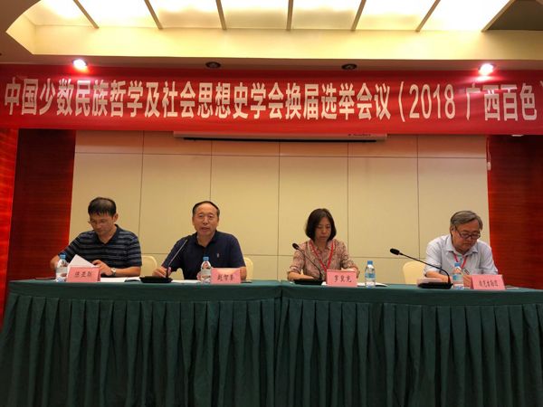 8月27日,中國少數民族哲學及社會思想史學會第五屆理事會換屆會議在廣西壯族自治區百色市紫竹國際大酒店召開。會議選舉產生中國少數民族哲學及社會思想史學會第六屆理事會,推選了新一屆的領導機構,修改了中國少數民族哲學及社會思想史學會章程。學會副理事長朝克吉勒圖教授根據黨中央、國務院及相關部門的最新文件精神對修改學會章程作說明。