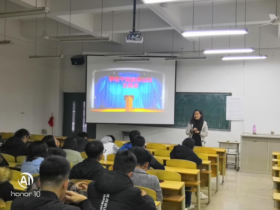 為建設一支胸懷理想、心系同學、品學兼優、作風扎實的學生工作骨干隊伍,2018年12月3日下午16點智能制造學院團總支四號教學樓310教室舉辦了團干部自律公約主題團課。主題團課由臧香偉老師和趙紹利老師主持,學院80余名團干部參加。