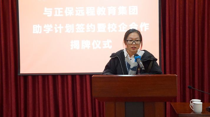 正保遠程教育集團校園業務部總監申燕瑞在發言中表示,此次合作的非常有意義,前景美好。表示能夠與黃海學院開展此次助學計劃十分榮幸,通過本次校企合作,一方面是肯定了集團當前的工作和能力,另一方面也對企業工作提出了更高要求。校企合作是聯系企業和學校的紐帶,能夠更好得將企業文化融入課堂,學生們能夠對所學的理論知識有更好的領會和實踐。