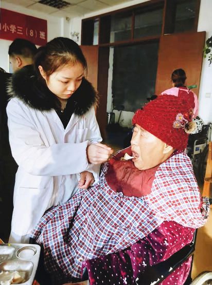 護理專業的鮑晴晴也將自己的專業知識用到了對老人們的照顧上,她利用自己的專業技能為老人打針、量血壓、測血糖......鮑晴晴說,等畢業以后她想到醫院里當護士,照顧更多需要照顧的人。