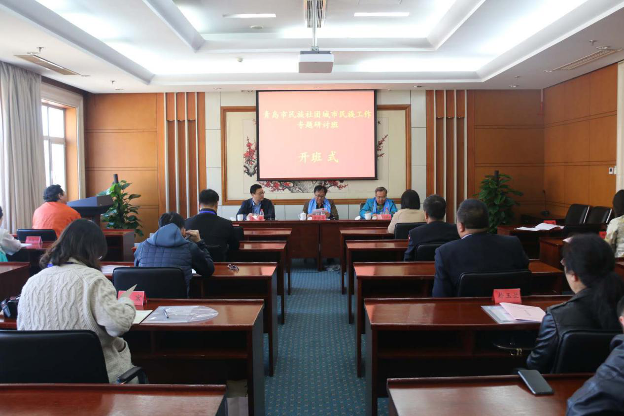 3月25日,青島市民族社團城市民族工作專題研討班在中央民族干部學院開班。中央民族干部學院黨委委員、副院長李耿年,青島黃海學院馬克思主義學院院長、青島市民族團結進步協會會長朝克吉勒圖出席開班式并講話。開班式由青島市生態環境局宣傳教育中心黨支部書記、副主任李榮主持。