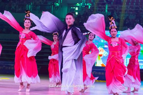4月5日上午10點,中國舞《唐韻》首先拉開比賽的帷幕,晚上7點,來自全國各地的拉丁精英為大家呈上一場精彩絕倫的舞蹈秀;賽前,童瑤和文智老師展現的帶有中國民族特色的拉丁舞蹈,讓現場觀眾眼前一亮。