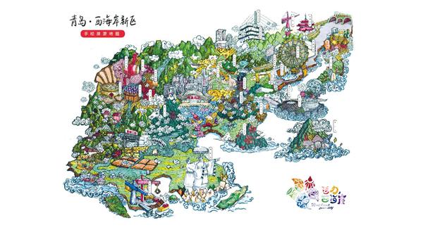 對于這張地圖,崔老師還稍有不滿意,“我覺得地圖上的景點過于緊密了一點,還可以再鋪開一些。”此外,崔老師還建議,旅游包含吃、喝、玩、樂等,后續還可以推出美食地圖、購物地圖等一系列手繪地圖作品,組成更加完整的西海岸新區旅游地圖。