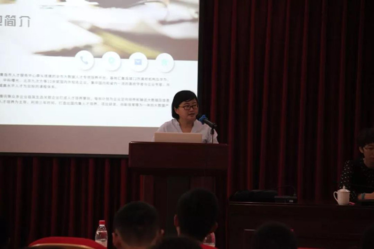 隨后由青島市大數據人才培養基地負責人李霞老師發言,她表示我們國家目前正處于創新創業時代,如果再不應用新的技術手段,不去擁抱新的科技的話,大家有可能又回到“小米+步槍”的時代。所以她希望借助基地搭建的平臺,企業能夠依托青島市人才服務中心、各駐青高校的共同努力,爭取實現“全國大數據人才看青島”的美麗夢想。