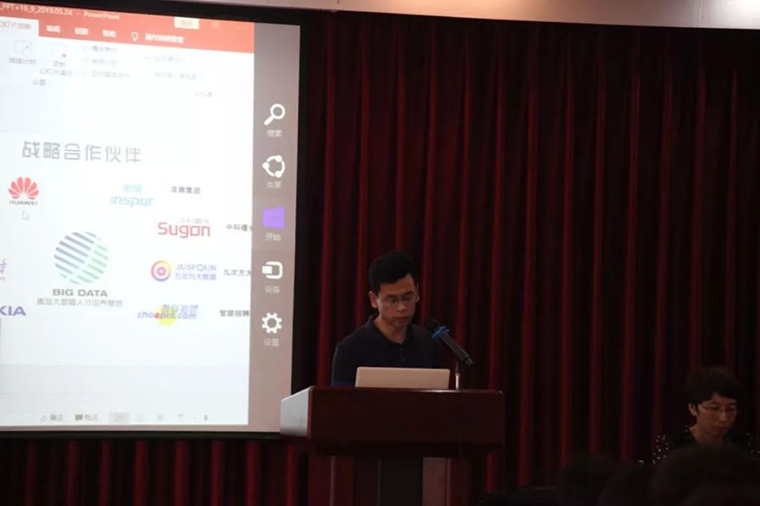 然后青島薩納斯智能科技股份有限公司大數據事業部王永剛發言。他首先對公司情況做了介紹,詳細介紹了薩納斯自主研發的大數據平臺和科研平臺,希望有機會能夠和學校一同培養產業需要的實用型大數據人才,為青島乃至全國的大數據事業的發展培養更多優秀人才。