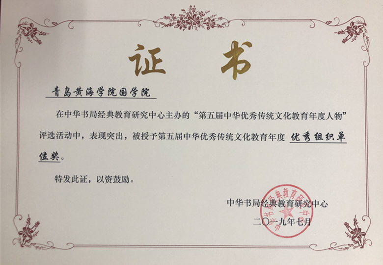 據悉,第五屆中華優秀傳統文化教育年度人物評選于2019年3月啟動,社會反響強烈。在經過初選初評、復審、終評等多層評選后,最終評選出全國優秀組織單位3個,管理人物3名,教學人物5名,教研人物4名,卓越貢獻人物4名。在獲得“優秀組織單位獎”的三個單位中,青島黃海學院國學院名列榜首。
