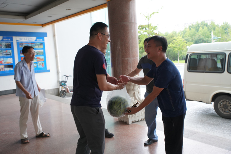一個甜甜的西瓜,一聲"辛苦了",這既是對假期值班教職工的尊重和敬意,更飽含著學校的深情關懷。