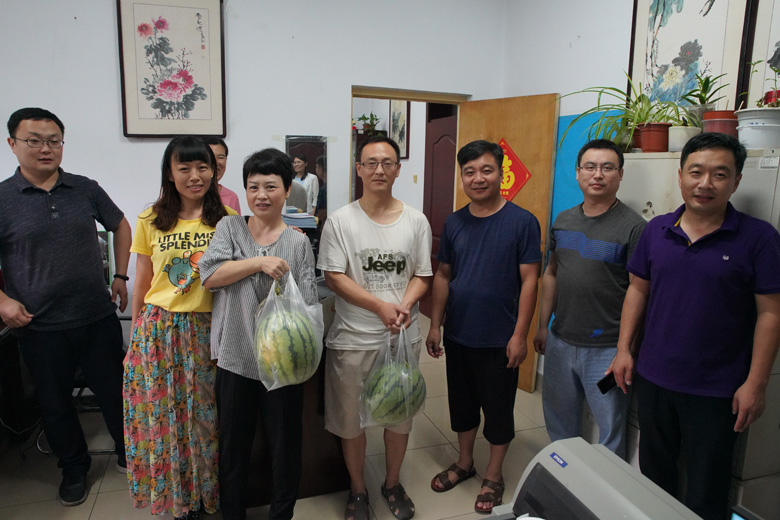 活動中,校工會還慰問了各二級學院、招生辦、人才公寓項目建設工地等單位職工,劉志強帶領團隊送上沉甸甸的清涼西瓜,與值班老師認真交流工作情況,代表學校對他們在假期中的勤懇工作表示了肯定和感謝。