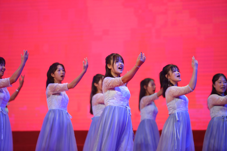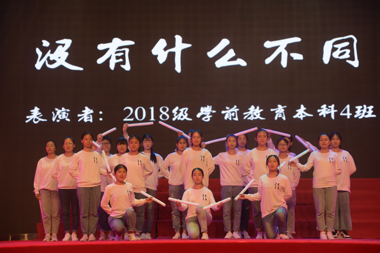 接下來,融匯了學前教育各專業的精彩節目接連上演。《青春的夢想》抒發了全體幼兒教師的愛與責任;舞蹈《表白2019》滿懷濃濃的愛與情誼;舞蹈《中華軍魂》氣勢如虹、精彩熱烈;舞蹈《國韻漢風》步伐輕盈,寧靜致遠……歌曲《昔日故事》、樂器合奏《秋的童年》、音詩畫《沒有什么不同》、舞蹈《龍》、歌曲《海闊天空》《十年》、鋼琴聯奏《歡樂進行曲》、歌伴舞《共和國之戀》,學前教育學院的同學們拿出看家本領,為大家帶來了一場精彩紛呈的視聽盛宴!