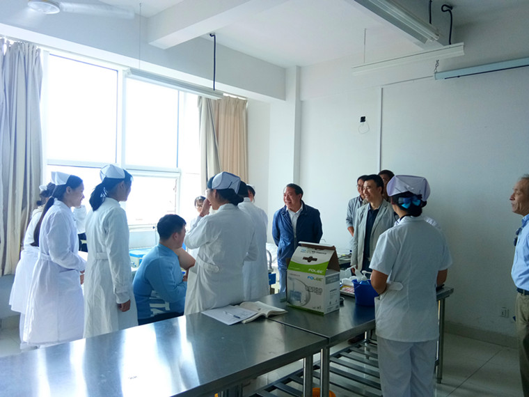 會議結束后,在護理與健康學院副院長王芝發的陪同下,梁忠環副校長一行實地參觀了重點專業實驗室。