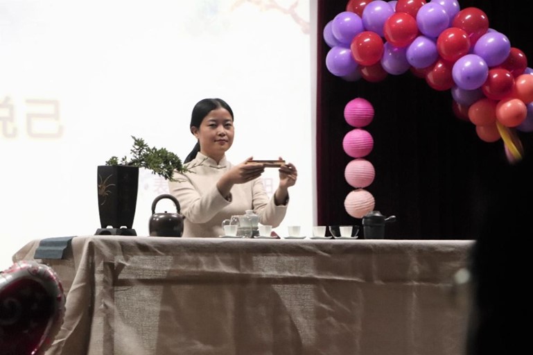 ,其中《蓋碗茶藝》、相聲《說茶》令觀眾拍案叫絕;瑜伽表演《彩旗飄飄》中,當兩種相近的古老的東方文化相互融合,竟有異曲同工之妙。