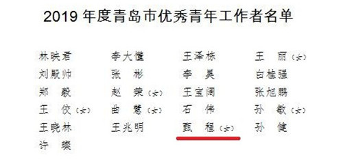 近日,共青團青島市委下發《關于表彰2019年度共青團工作先進集體和先進個人的通報》,我校團委被共青團青島市委授予“2019年度青島市先進團委”榮譽稱號,我校團委書記甄程被評為“2019年度青島市優秀青年工作者”。