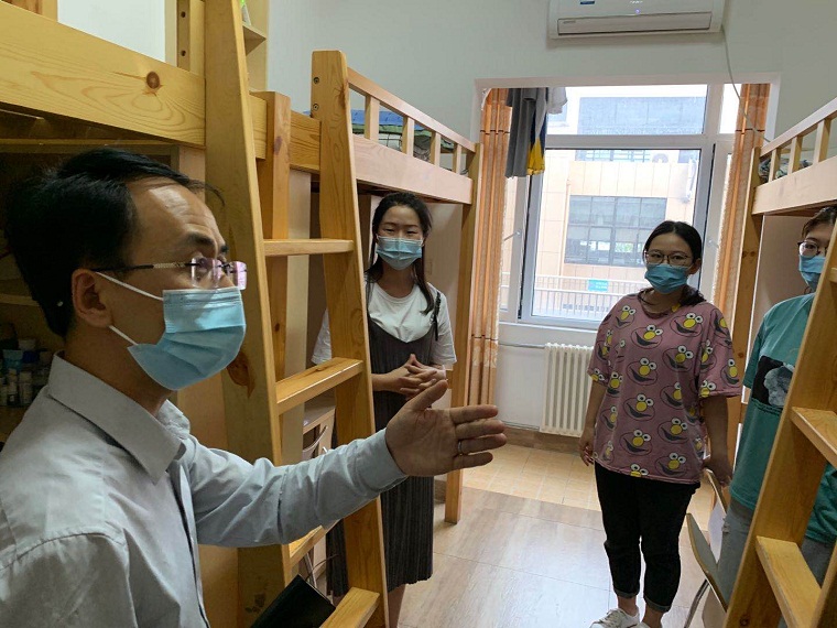 在此次慰問返校學生的過程中,校領導們了解了同學們的思想動態,寢室的衛生狀況,并提醒學生注意疫情防控、用電安全和人身安全等。并在與同學們的交流中時,囑咐大家根據學校作息表調整安排好自己的學習和生活時間,養成好的生活習慣,為自己的大學生活進行合理的規劃,最后與同學們交談所學專業的學術問題,同學們也熱情迎接,積極響應,寢室里洋溢著師生間融融情誼。