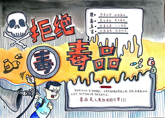 因此,藝術學院展開“拒絕毒品,珍愛生命”主題活動,同學們積極參與防毒作品創作,用自己的專業知識來打贏“毒品戰役”。