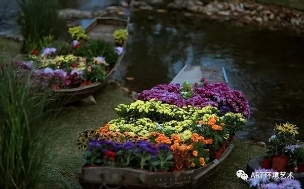 設計說明:水無形,花有色。舊船上,生新花。鋪青疊翠,花香四溢,讓我們一起傳遞夢想,傳遞愛!
