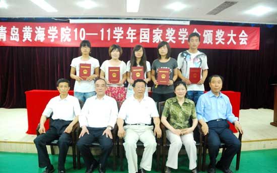 大會由辦公室魏副主任主持。首先,由院黨委副書記宋慶澤代表學院宣讀青島黃海學院《關于公布2010-2011學年度國家獎學金、國家勵志獎學金獲獎學生名單的決定》和獲獎學生的名單——安文豪等5人獲得國家獎學金,每人8000元;姜雷等217人獲得國家勵志獎學金,每人5000元;此外還有981人獲得國家助學金,平均每人3000元。隨后,學院領導為國家獎學金獲得者代表頒發了榮譽證書,獲獎代表張楠楠、王希航同學發表獲獎感言。